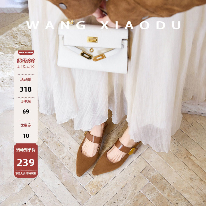 PrettyRiver法式牛反绒面玛丽珍鞋芭蕾单鞋女复古麂皮浅口平底鞋