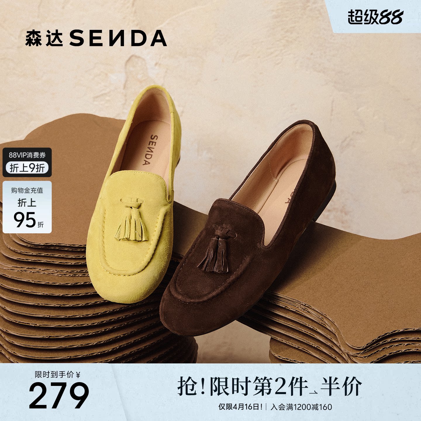 森达超软羊皮乐福鞋女鞋26春新绒面皮鞋一脚蹬厚底内增高休闲单鞋