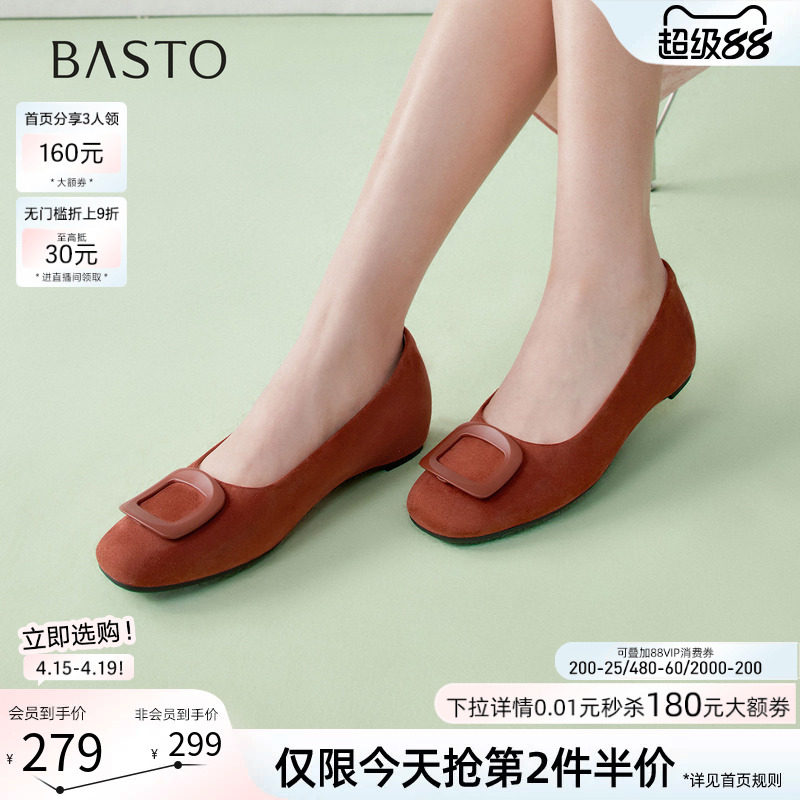百思图26春商场新款通勤绒面平底单鞋浅口船鞋坡跟女鞋U2613AQ6