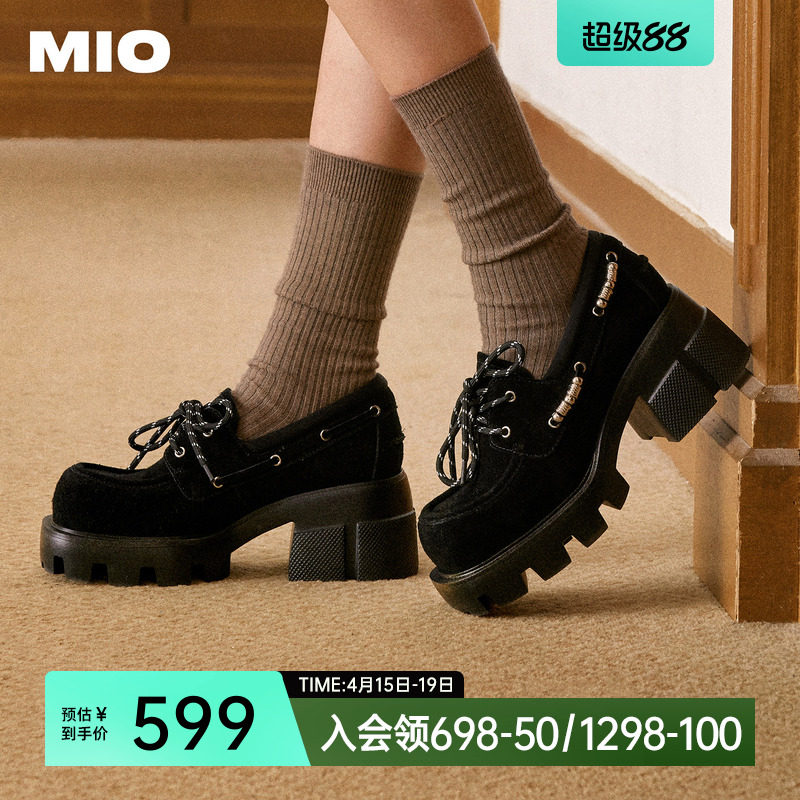 李沁同款 MIO米奥复古大头绒面乐福鞋女春款厚底增高6.5cm单鞋
