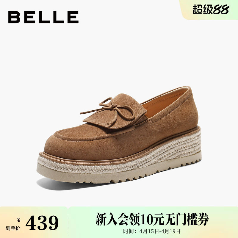 百丽复古绒面乐福鞋女2026春季新款厚底渔夫鞋通勤单鞋F2F1DAA6