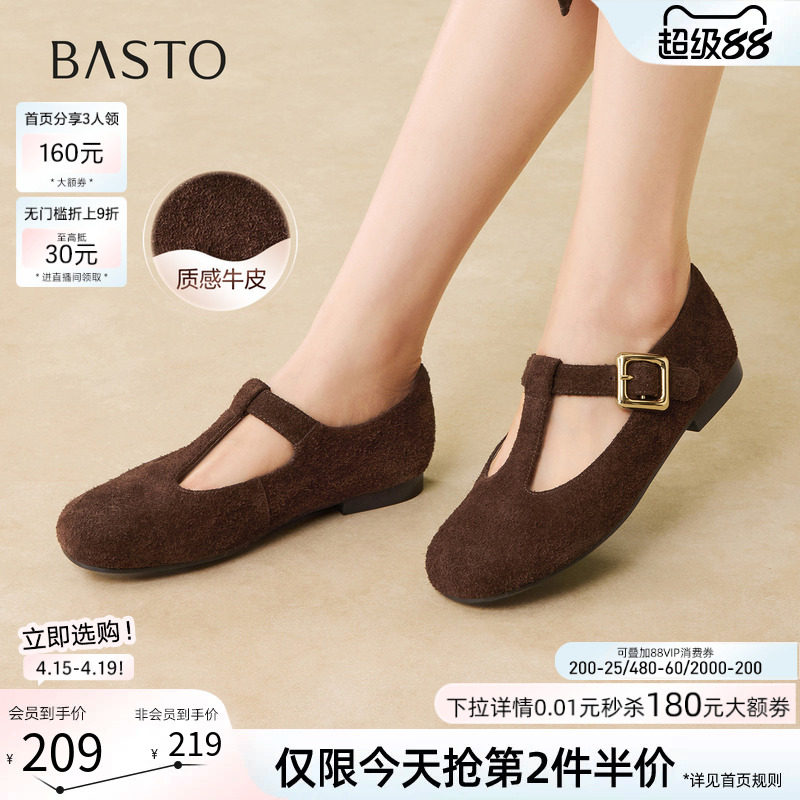 百思图2026春季商场新款法式绒面T字玛丽珍鞋女浅口单鞋F2093AQ6