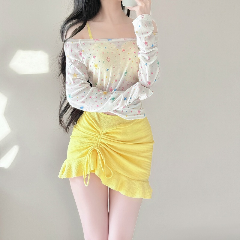 泳衣女纯欲性感辣妹黄色比基尼分体裙式三件套小胸聚拢度假风温泉