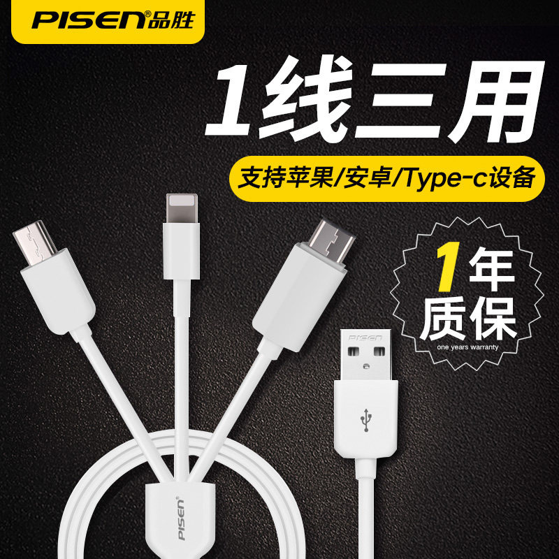 品胜三合一数据线 安卓 TYPE-C 5S/6S/7 适用苹果3合1充电器线