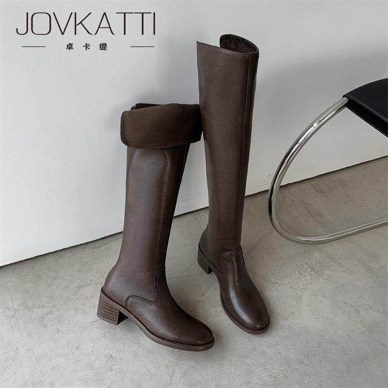 JOVKATTI覆古圆头粗跟高筒靴女2025新款秋冬过膝两穿高跟骑士靴子