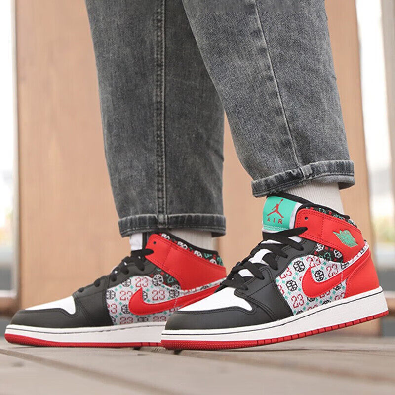 Jordan高帮女板鞋耐克圣诞节AJ1运动鞋软底防滑耐磨休闲鞋DQ8423