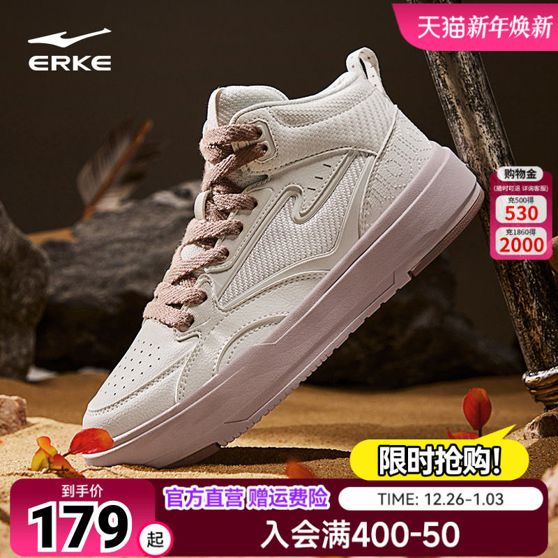 制霸2|鸿星尔克高帮女鞋厚底增高板鞋学生休闲鞋冬季篮球风运动鞋