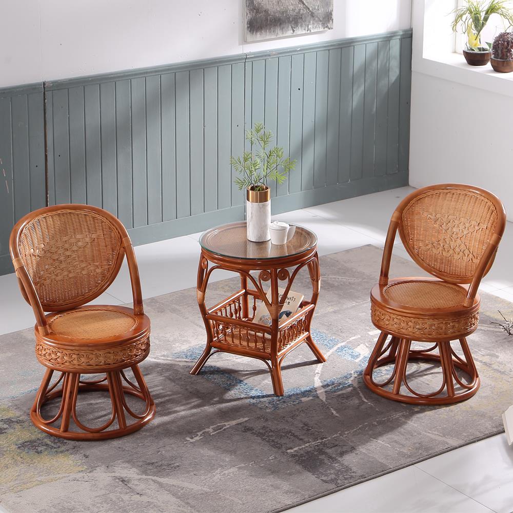 亚发家居藤椅茶几三件套旋转椅阳台桌椅组合室内休闲椅单人靠背椅
