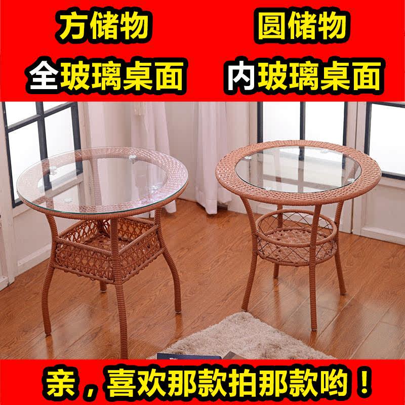 阳台茶桌椅组合家用休闲小桌椅户外藤椅三件套可收纳茶几椅子套装