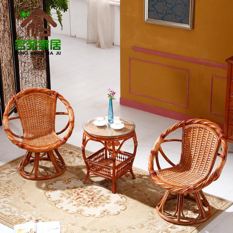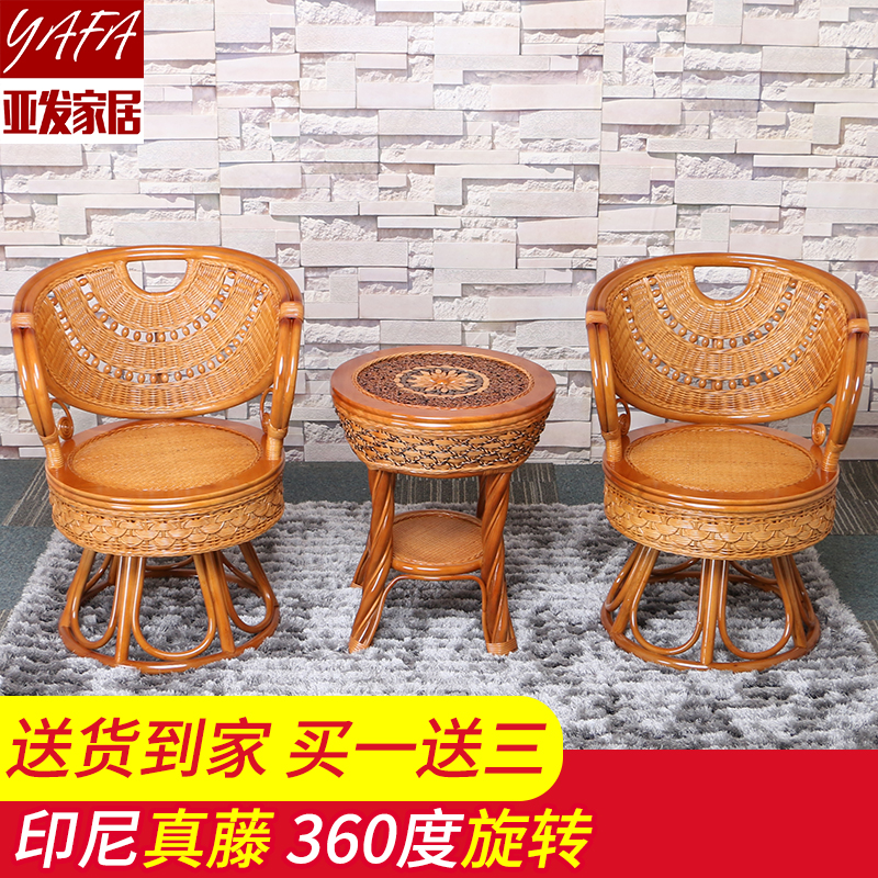 亚发家居天然真藤阳台休闲桌椅组合旋转藤椅茶几三件套单人靠背椅
