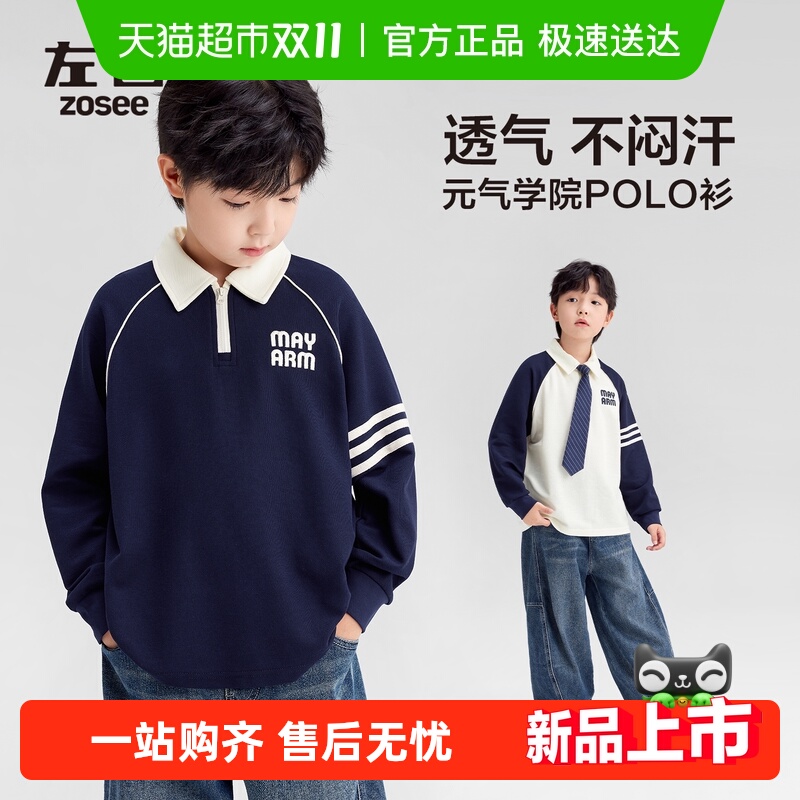 左西童装男童长袖t恤学院风POLO衫儿童秋装2025新款男孩大童卫衣