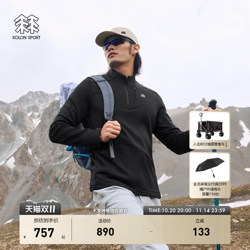 KOLON SPORT可隆长袖T恤吸湿排汗抗菌男士半拉链长袖男T恤