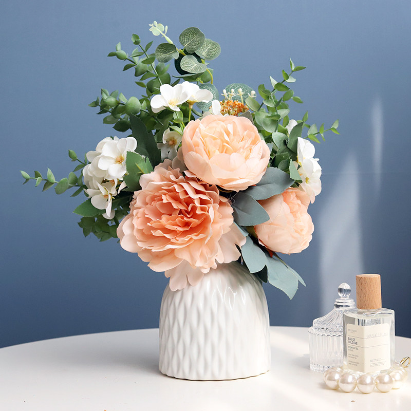油画牡丹仿真花复古高档欧式焦仿生花艺摆设装饰绢花高级假花客厅