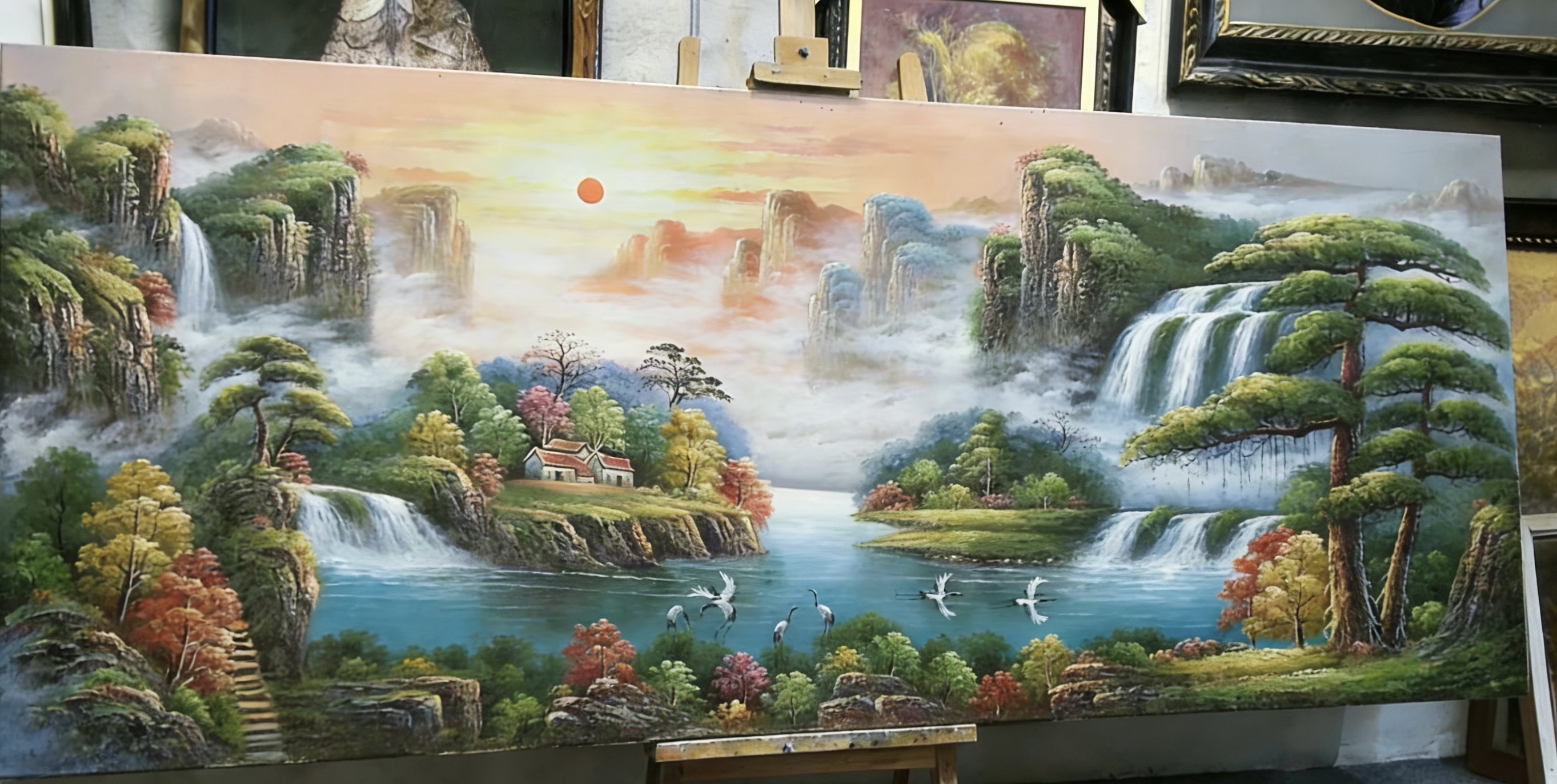 无框挂墙画 欧式玄关山水油画 寓意吉祥油画风景挂画聚宝盆高档画