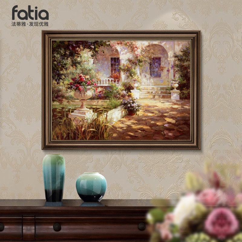 世界名画高档手绘油画美式玄关装饰画欧式印象花园复古典风景挂画