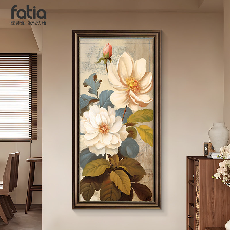 美式花卉玄关装饰画复古油画欧式高档餐厅挂画走廊过道壁画高级感