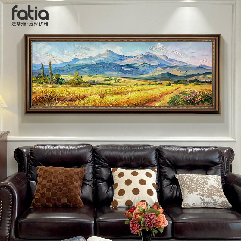 美式客厅装饰画高档大气沙发背景墙挂画欧式手绘油画2025新款壁画