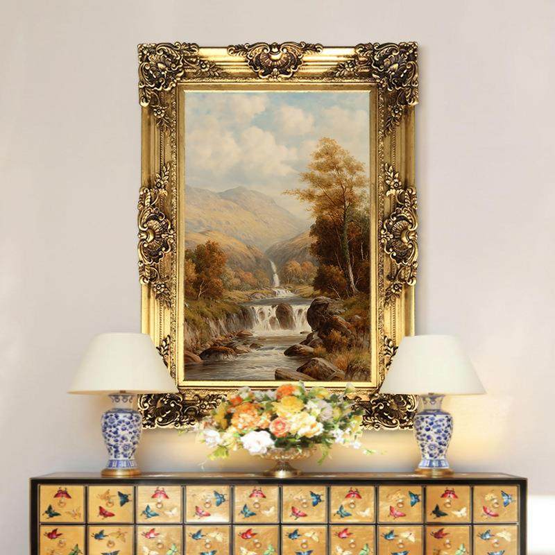 世界名画欧式高档瀑布古典风景油画山水画客厅玄关壁炉装饰画竖版