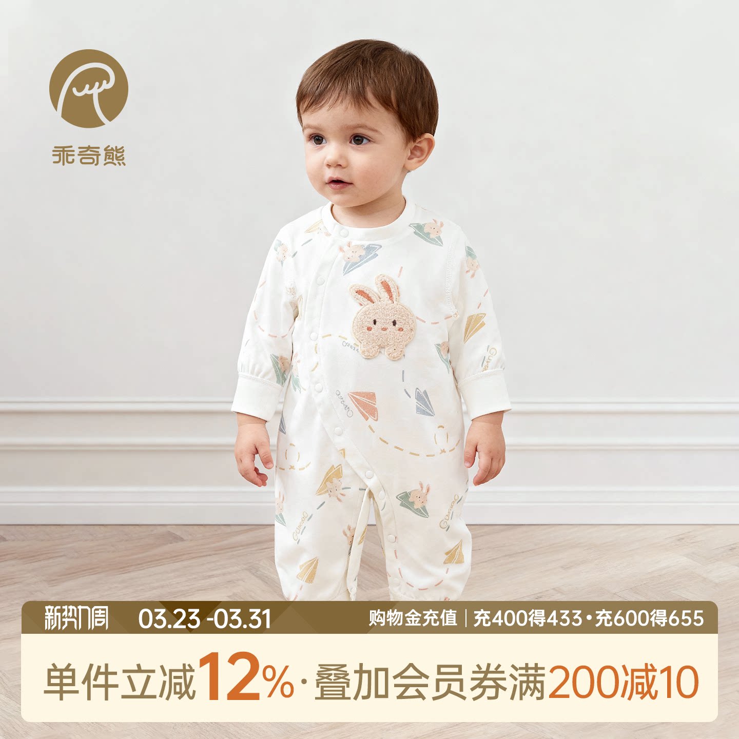 乖奇熊男女宝宝连体衣春秋季纯棉新生婴儿衣服超萌居家哈衣爬爬服