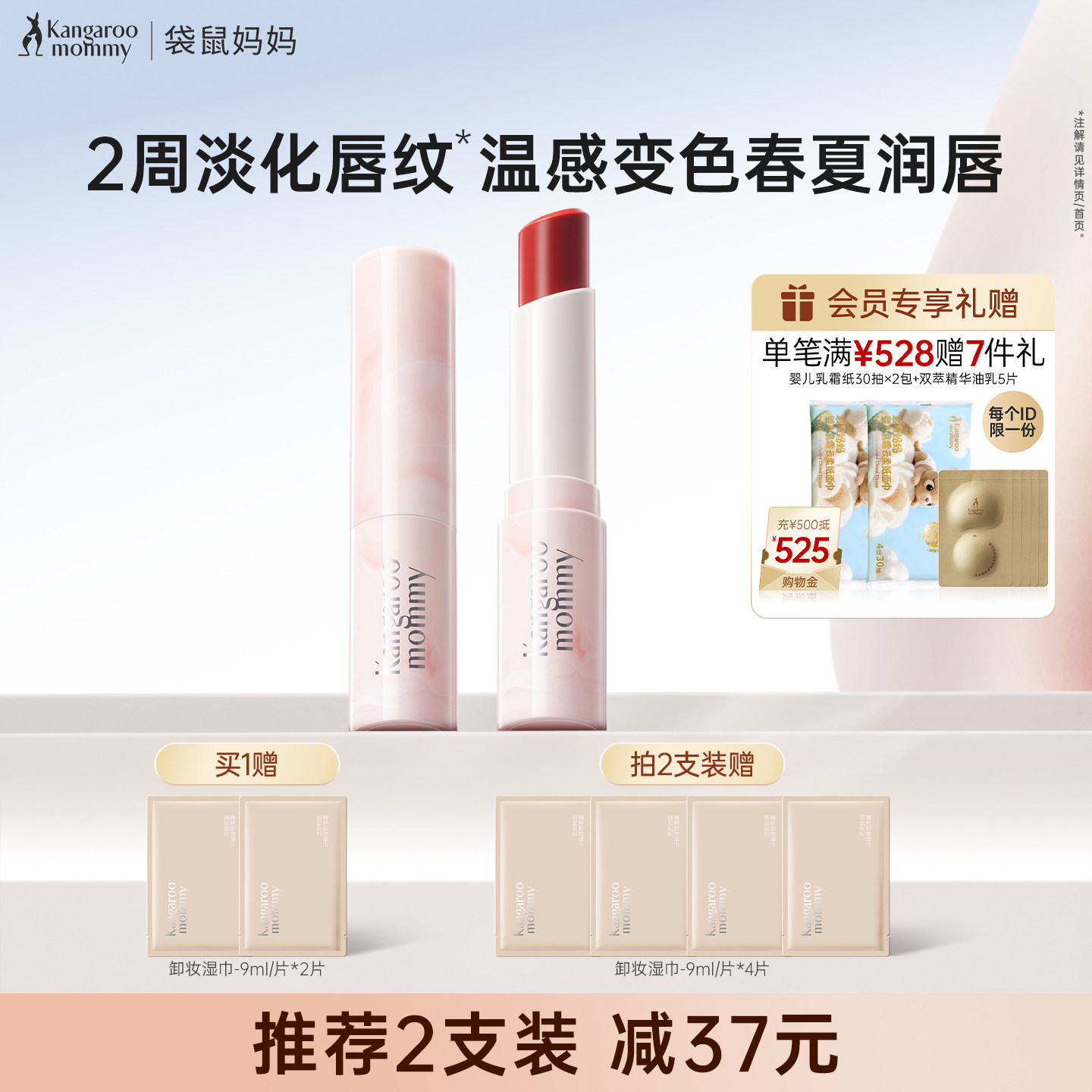 袋鼠妈妈淡彩变色口红可用化妆品有色滋润唇膏提气色专用淡化唇纹
