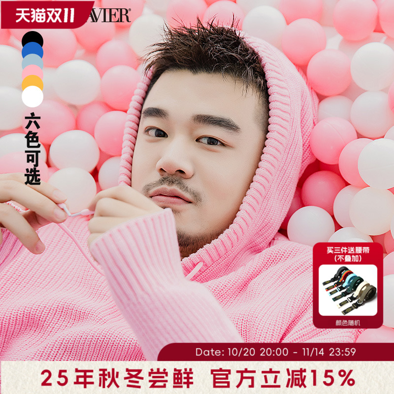 韦恩泽维尔大码连帽针织衫男情侣款加肥加大秋季胖子宽松毛衣7991