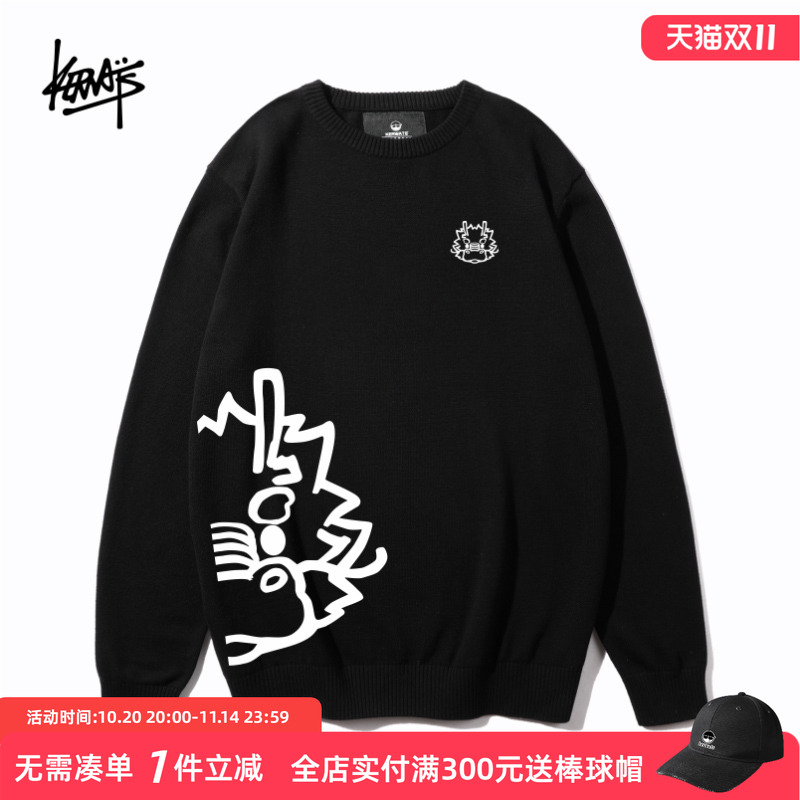 KERWATS可维斯品牌大码男女情侣无性别国潮龙图案印花秋冬毛衣