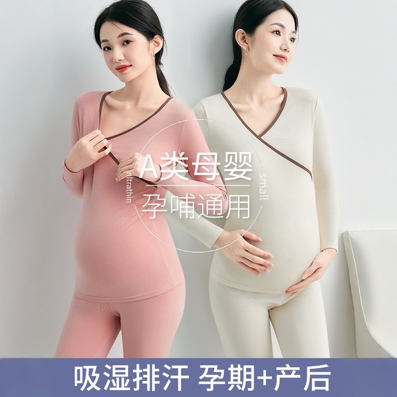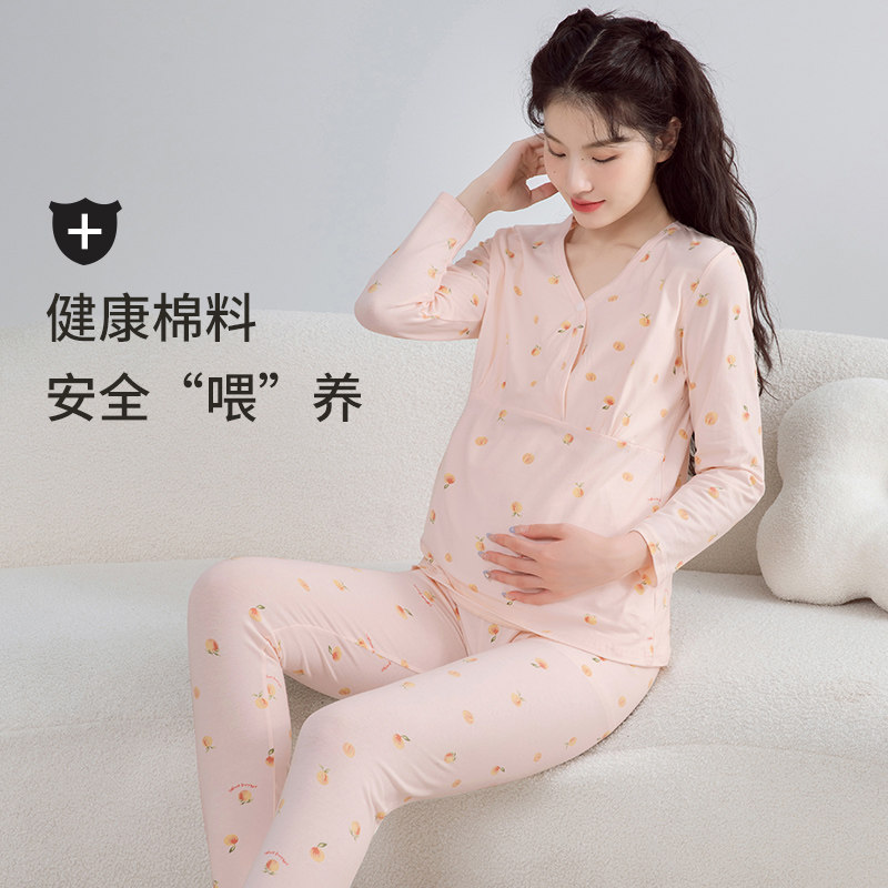 婧麒哺乳秋衣上衣孕妇保暖内衣秋裤套装睡衣纯棉产后喂奶月子服冬