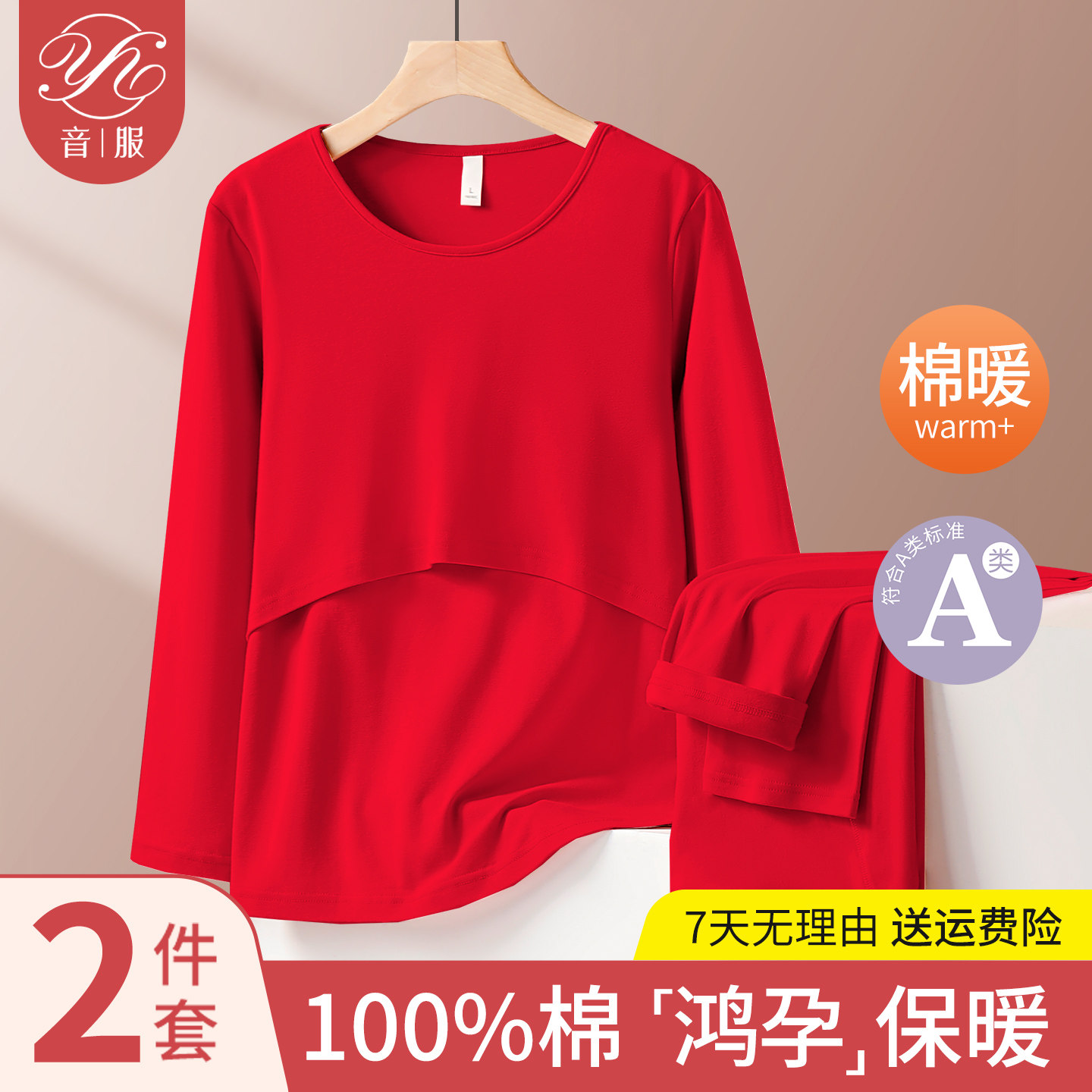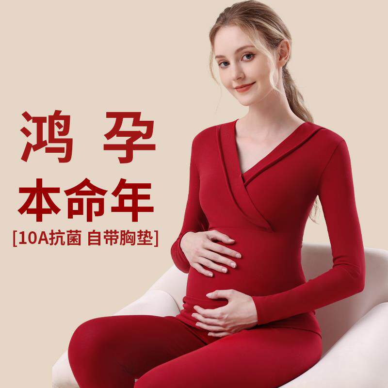 本命年孕妇秋衣秋裤纯棉保暖内衣内搭套装红色孕期产后哺乳期喂奶