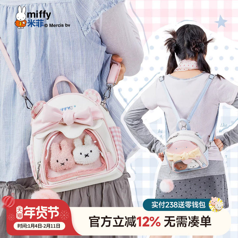 米菲英伦学院风双肩包2025新款趣味卡通印花背包甜美可爱学生书包