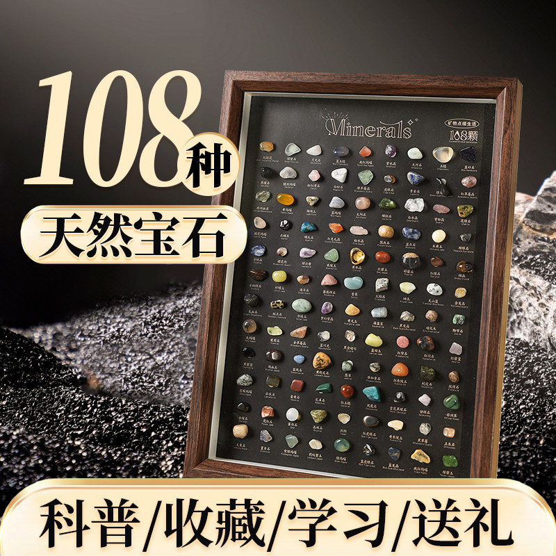 108种真地质金属矿石罕见稀有标本天然水晶原石相框摆件摆台挂墙