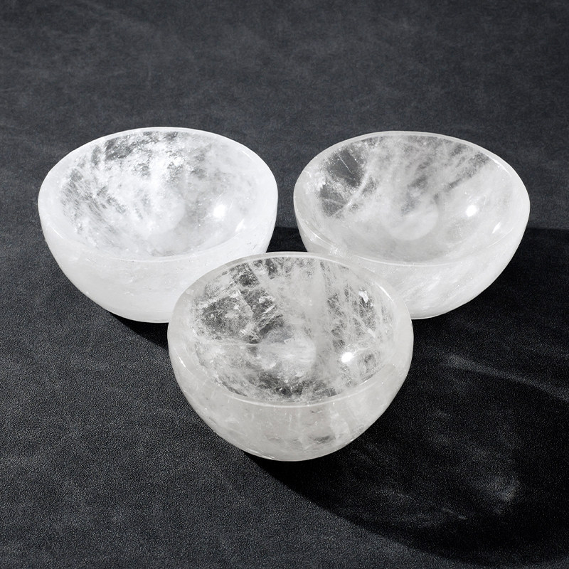 天然白水晶消磁碗原石打磨家居饰品聚宝盆招财手链串首饰收纳圆碗
