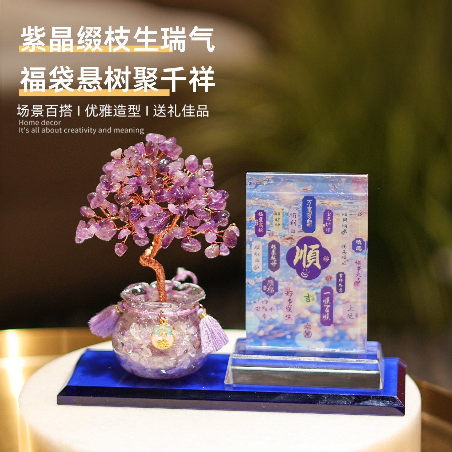 事业顺利紫水晶发财树办公室工位玄学桌面小摆件家居招财装饰礼物