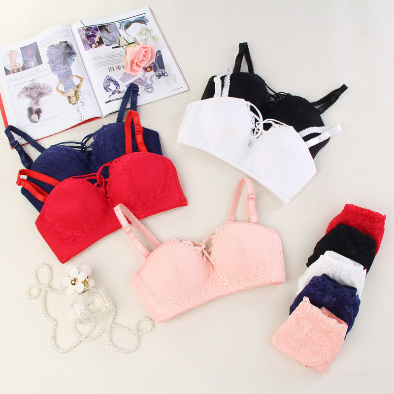 性感女士内衣无钢圈小胸聚拢收副乳防下垂调整型蕾丝光面文胸套装