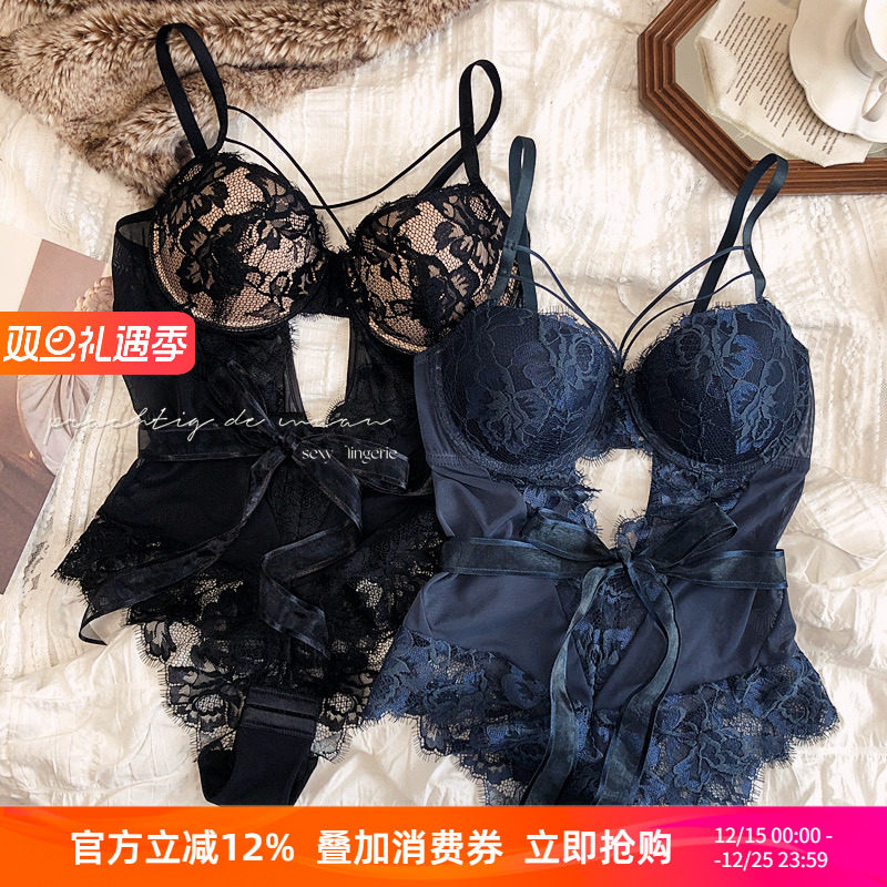 爆款 一片式四角杯 全蕾丝性感罩文胸 拉线聚拢调整型内衣套装