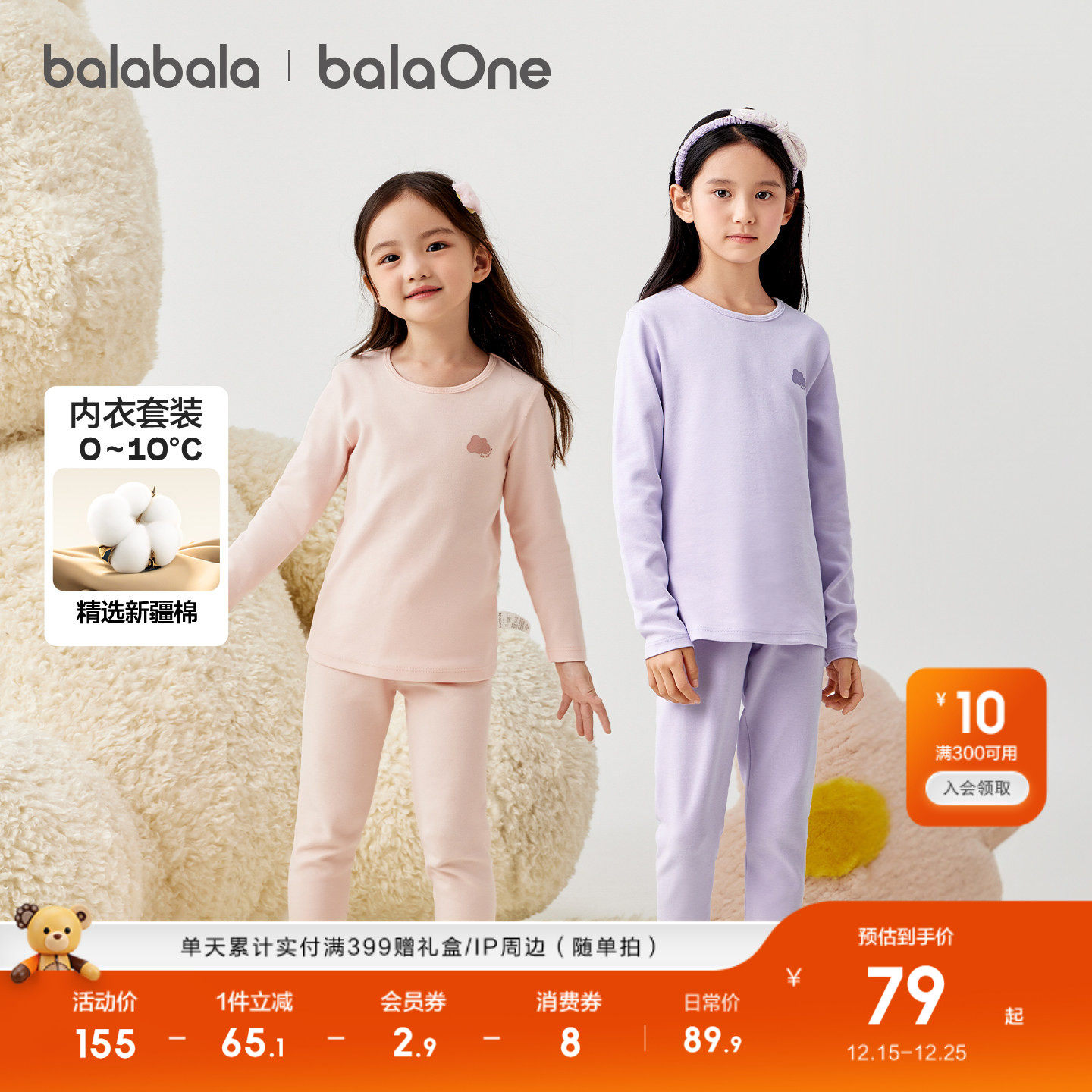巴拉巴拉女童保暖内衣套装秋冬季加厚儿童秋衣秋裤打底睡衣A类棉