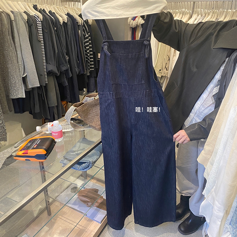 女童深蓝牛仔背带裤2025秋季新款中大童韩版宽松直筒裤长裤小个子