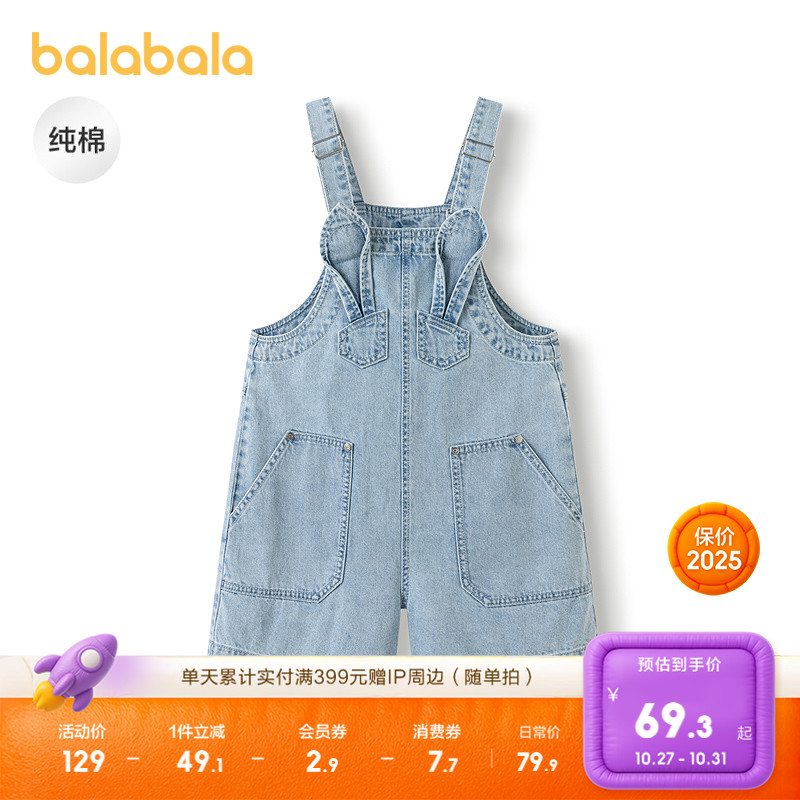 巴拉巴拉女童背带裤中大童牛仔短裤儿童纯棉裤子连体裤夏装童装潮