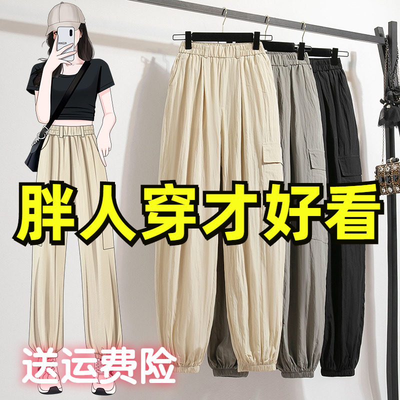 大码牛奶丝胖mm哈伦裤女宽松休闲九分裤300斤胖妹妹薄款显瘦女夏