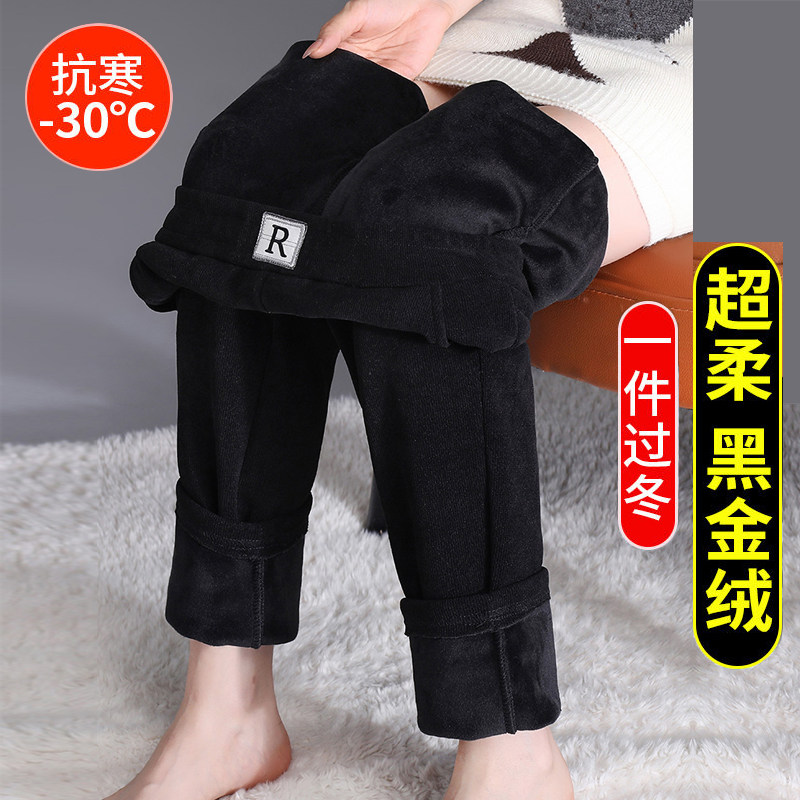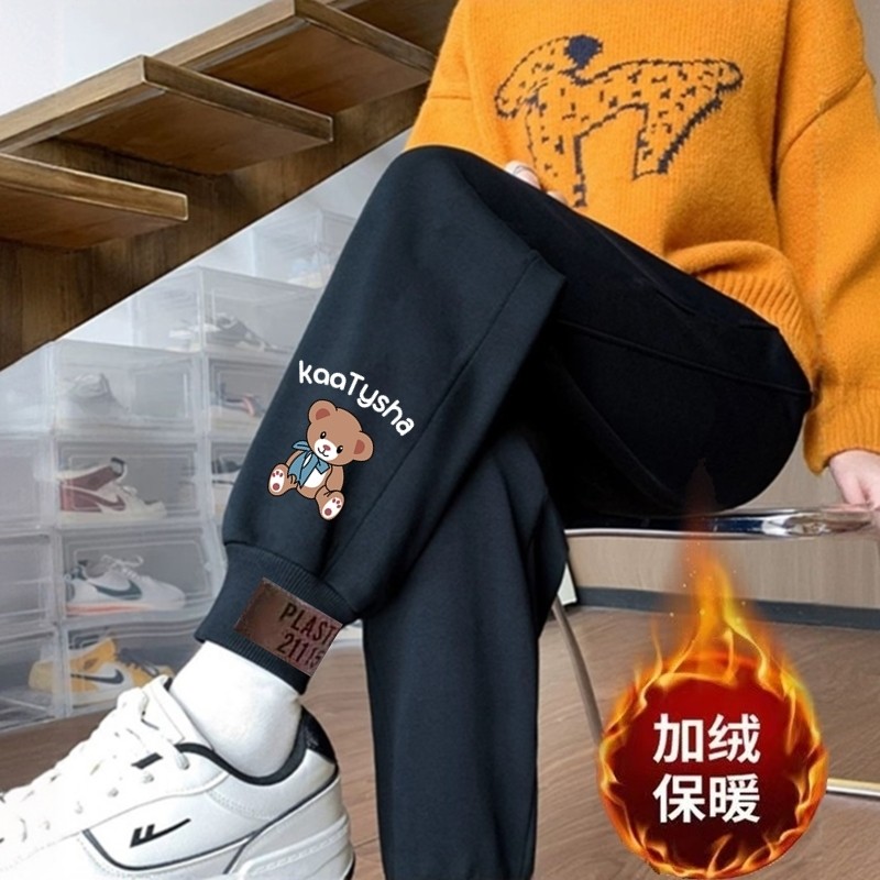 大码女裤秋冬装加绒加厚显瘦运动裤 200斤胖mm哈伦裤休闲黑色长裤