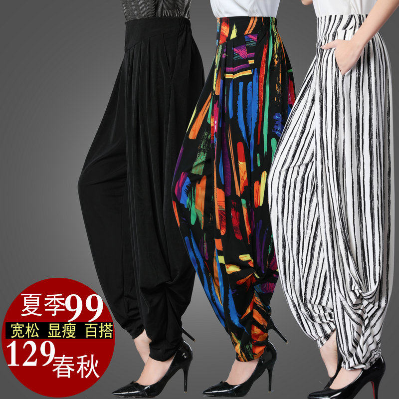 春秋萝卜裤韩版大码休闲裤子显瘦灯笼裤宽松阔腿裤胖mm哈伦裤女夏