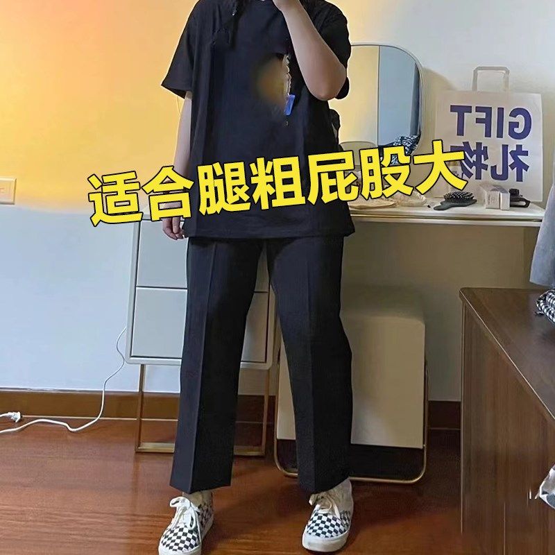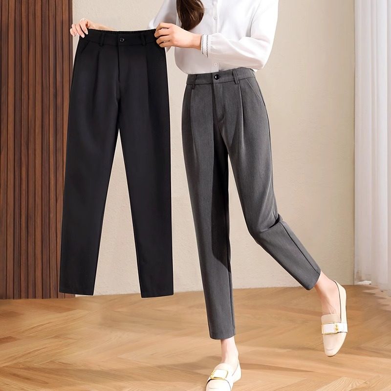 黑色职业西装裤女春秋2025新款大码胖mm哈伦裤夏季薄款九分烟管裤