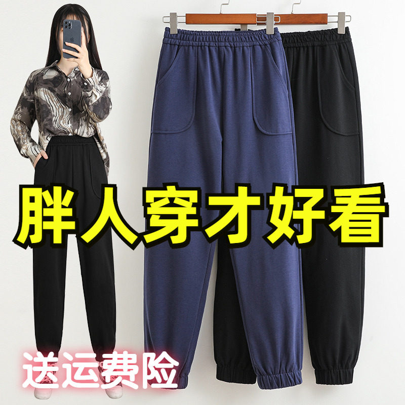 大码胖mm哈伦裤女春秋萝卜裤高腰显瘦卫裤宽松学生加绒休闲运动裤