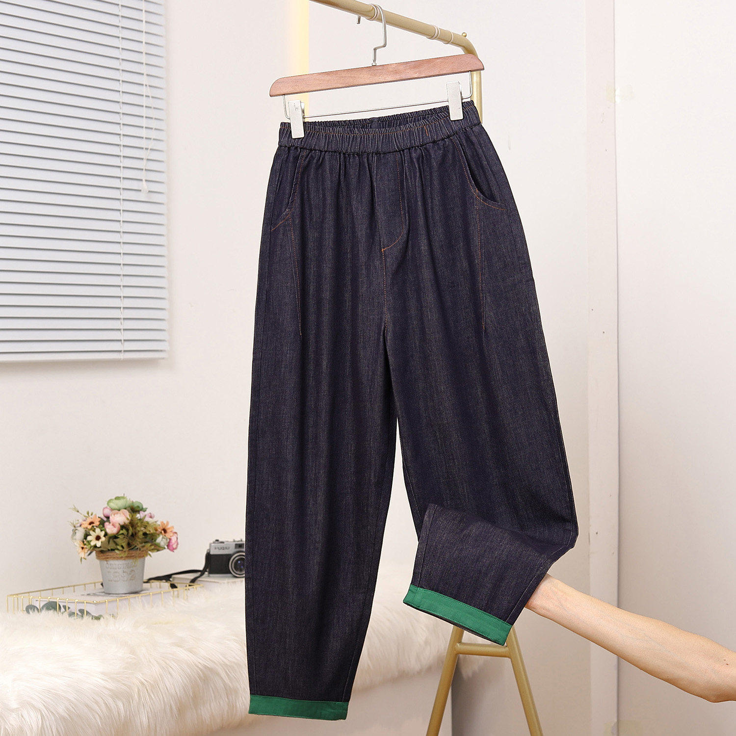 女士大码胖mm哈伦裤2025春秋高腰宽松休闲裤九分裤百搭显瘦牛仔裤