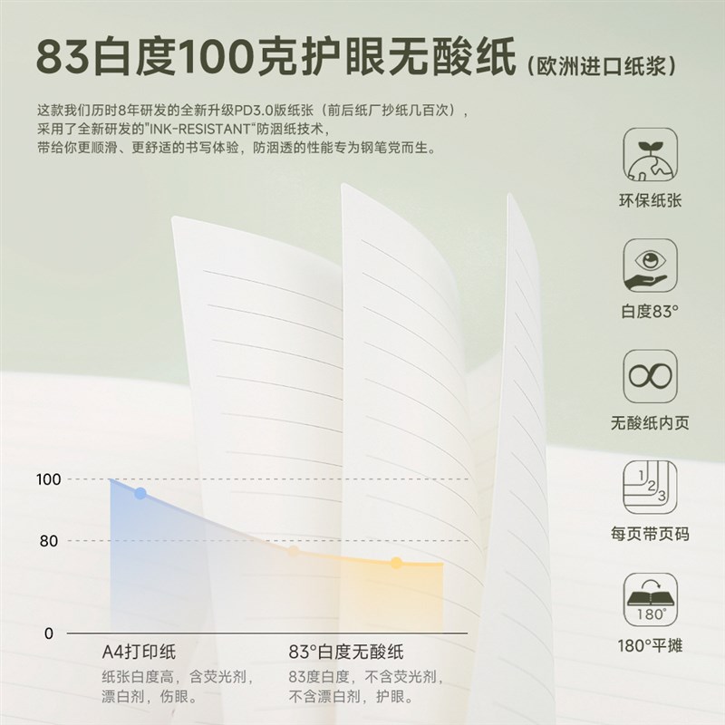 PAPERIDEAS页码裸装本空白纸日记本办公简约学生记事本a5替换内芯
