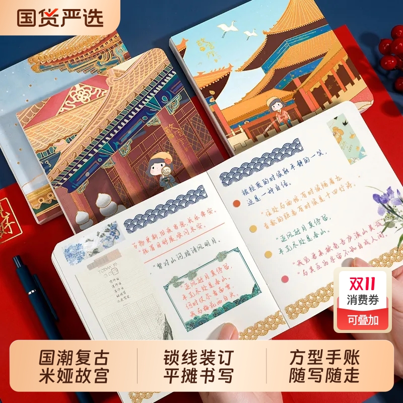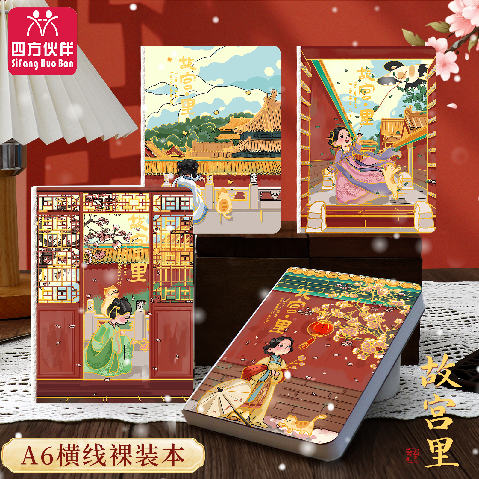 四方伙伴高颜值方方裸装本国潮故宫行空白可平摊加厚手账本笔记本少女心笔记本子学生手帐本