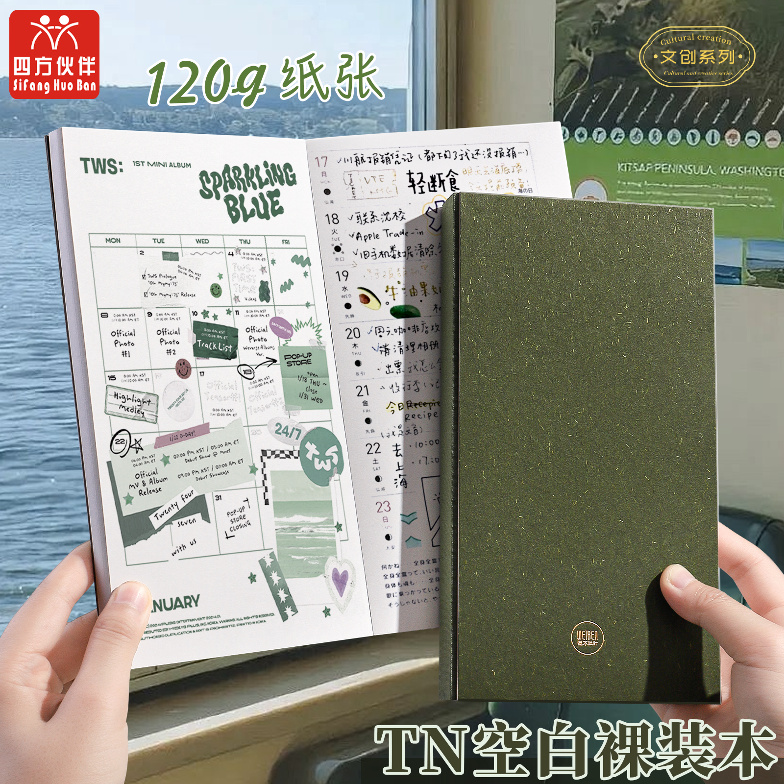 四方伙伴TN空白裸装本学生加厚日记本成人高颜值空白本简约手账本笔记本本子
