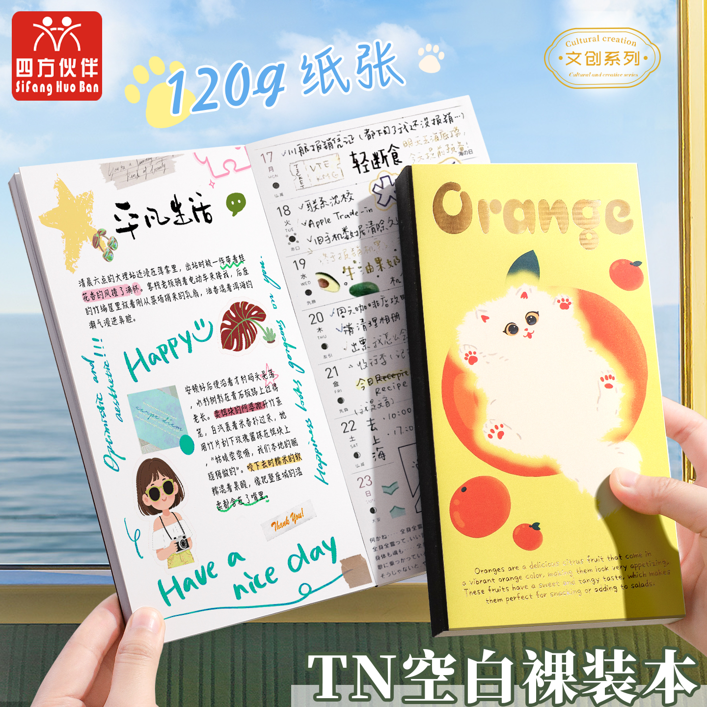 四方伙伴TN空白裸装本梦幻随想高颜值ins风精装日记本简约趣味手账本本子笔记本