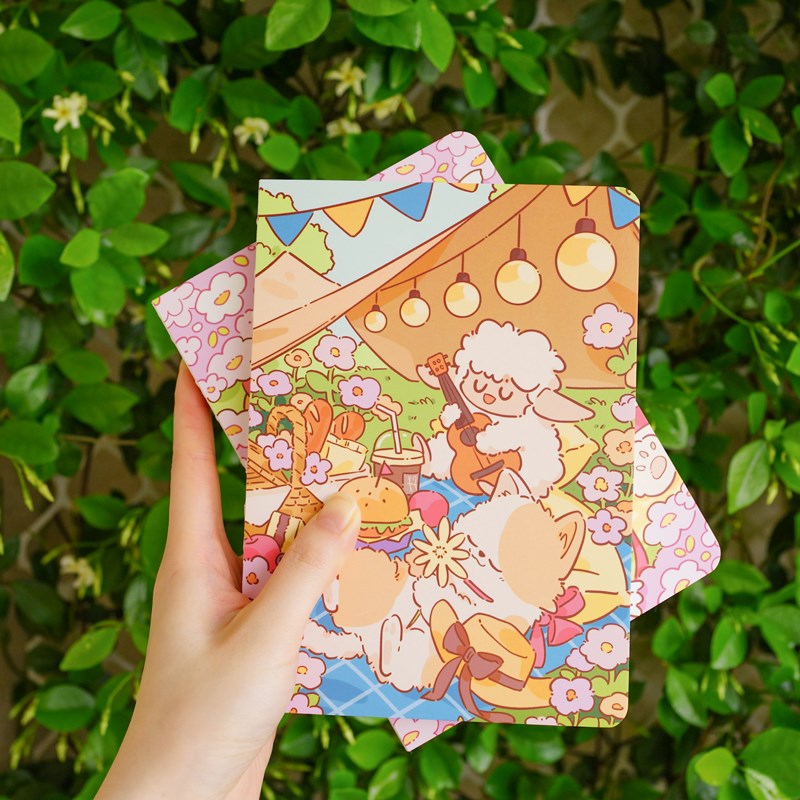 可爱插画猫咪笔记本空白日记手帐本记事裸装本旅行集章动物盖章本