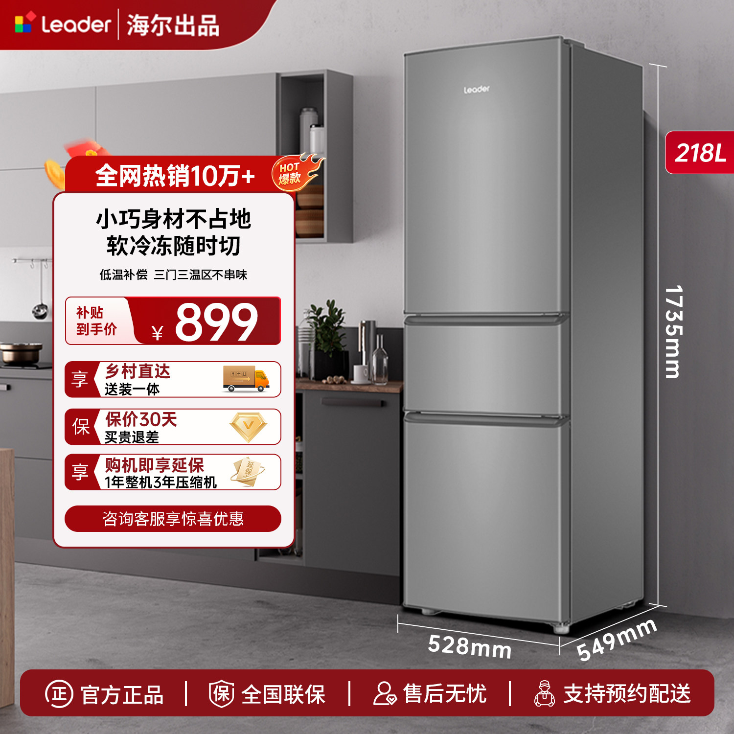 海尔出品统帅218L三开门出租房宿舍二人家用小型节能超薄小冰箱