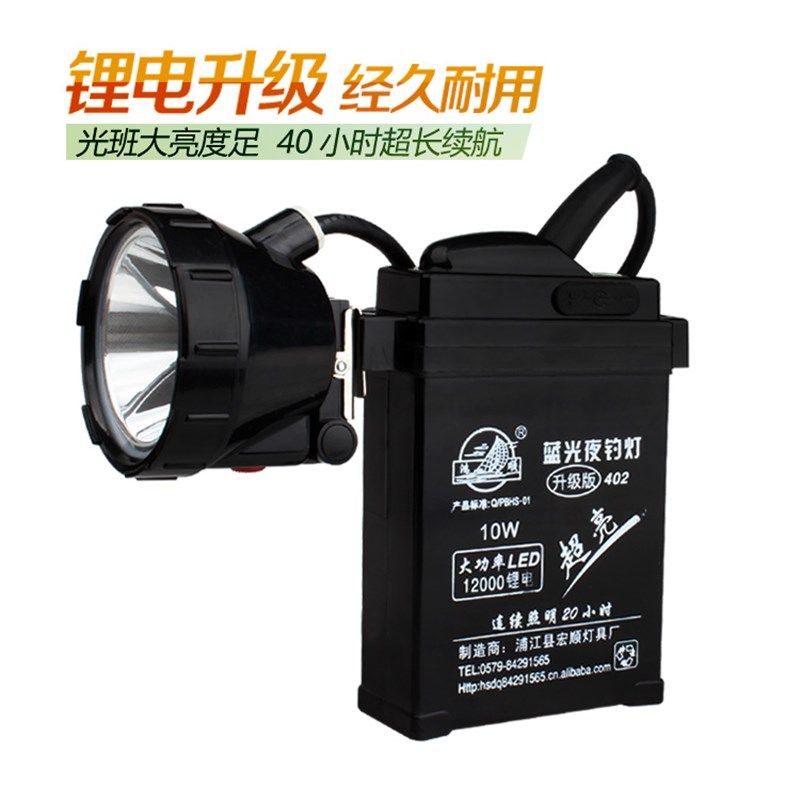 鸿顺蓝光夜钓20W钓鱼灯黄光LED超亮充电远射头戴电瓶矿灯手电筒